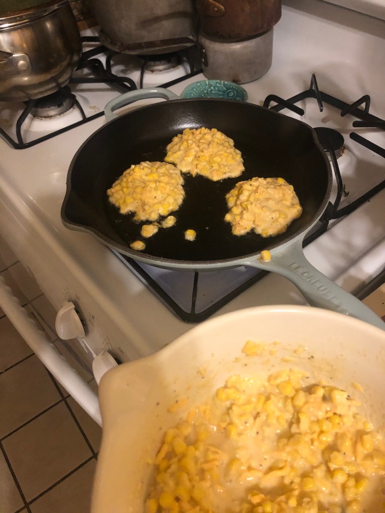 Hi Guys….So, I found this Corn Fritters recipe in NYT Cooking that looked really good. Besides the fact that I try to stay *AS CLOSE* to gluten free as possible, as well as keep an eye out for other enemies in my FODMAP (https://www.pinterest.com/pin/33495590952313721/?nic_v2=1a4TTCQ96) food recommendations, it was clear I would be needing to make some changes to this recipe. I had to make this recipe twice. The first alteration came out very thick and pancake-like. Immediately I could see what some of the changes would be on the next batch. This week, I will take you on my journey of trying to create (or dare I take out the word “trying” and just claim perfection ?!) the perfect corn fritter. My “mistake” batch was good, but just not what I was aiming to make. I had to eat a lot of corn fritters for you guys, so pleaseee I hope you enjoy these!